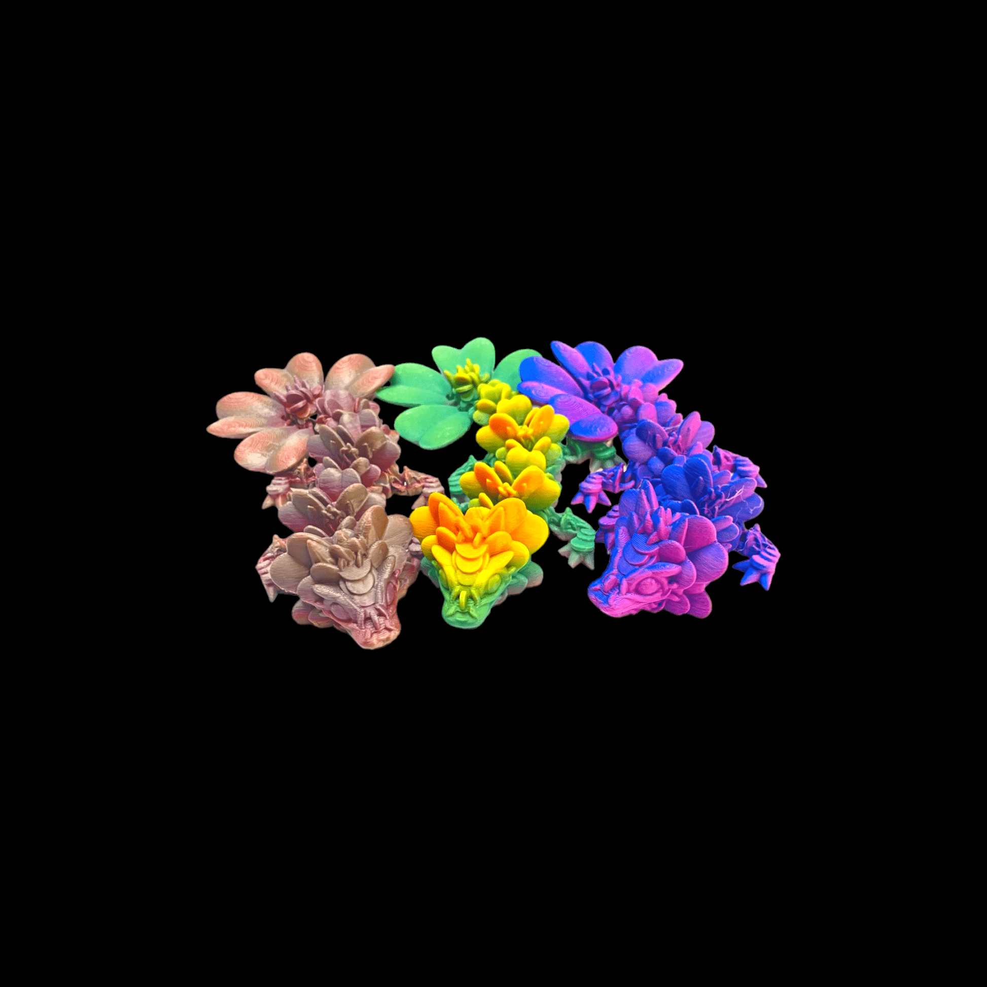 Introducing our Baby Orchid Dragon - an enchanting 3D Printed masterpiece with articulated joints, where the delicate beauty of orchids meets the whimsy of mythical charm. This captivating creation captures the essence of fantasy in a smaller, cuter form, featuring meticulously crafted articulating joints that bring this tiny dragon to life, allowing for an adorable range of poses.