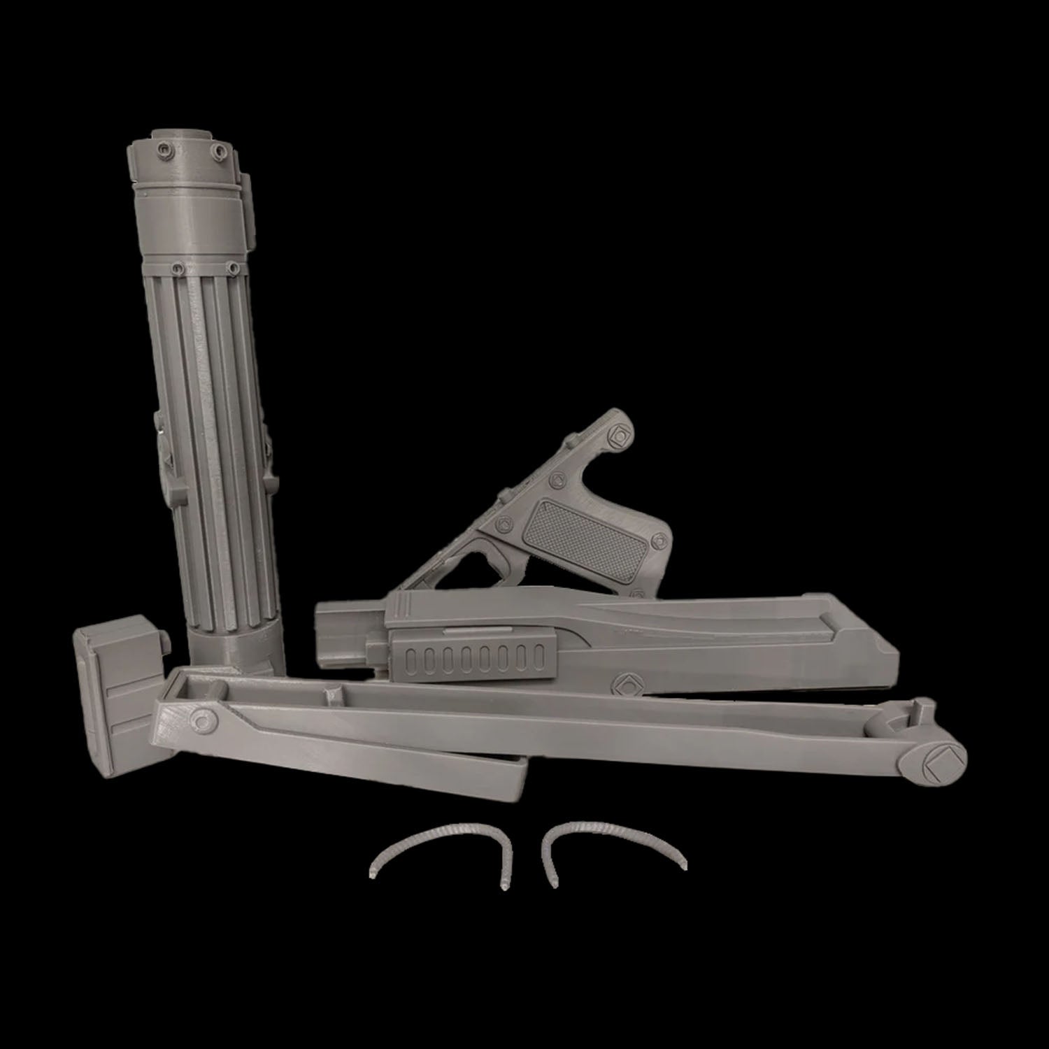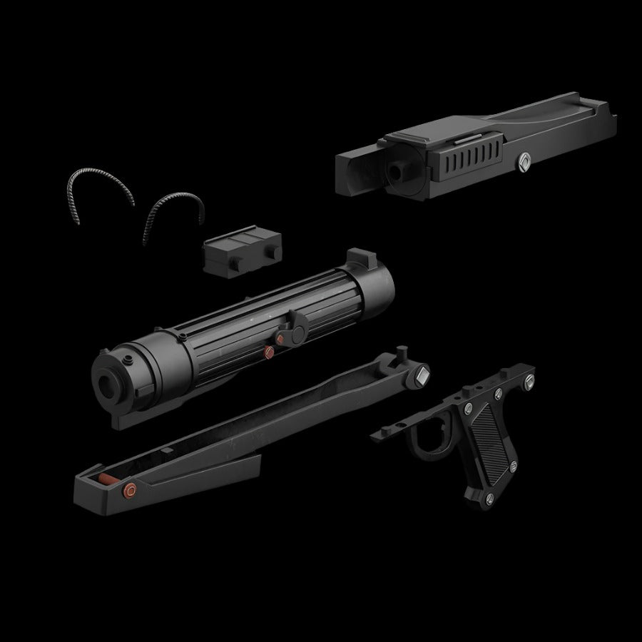 This blaster has been separated for ease of printing and assembly. It features a pin system to assemble the under-grip.