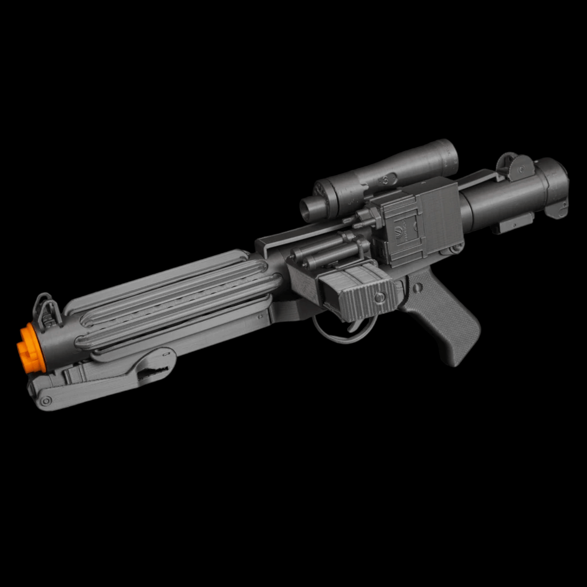 The E-11 Blaster Rifle is an iconic weapon wielded by the forces of the Galactic Empire, embodying the might and authority of the Imperial military. Renowned for its reliability and firepower, this blaster rifle serves as the standard-issue armament for stormtroopers and Imperial forces across the galaxy. With its sleek design and precision targeting systems, the E-11 excels in delivering lethal firepower with accuracy and efficiency. Whether patrolling the streets of Imperial-occupied worlds or engaging rebel insurgents in intense firefights, stormtroopers armed with the E-11 Blaster Rifle stand as symbols of Imperial power and control. As a cornerstone of the Empire's military might, the E-11 embodies the relentless pursuit of order and dominance in service to Emperor Palpatine's vision of galactic supremacy.