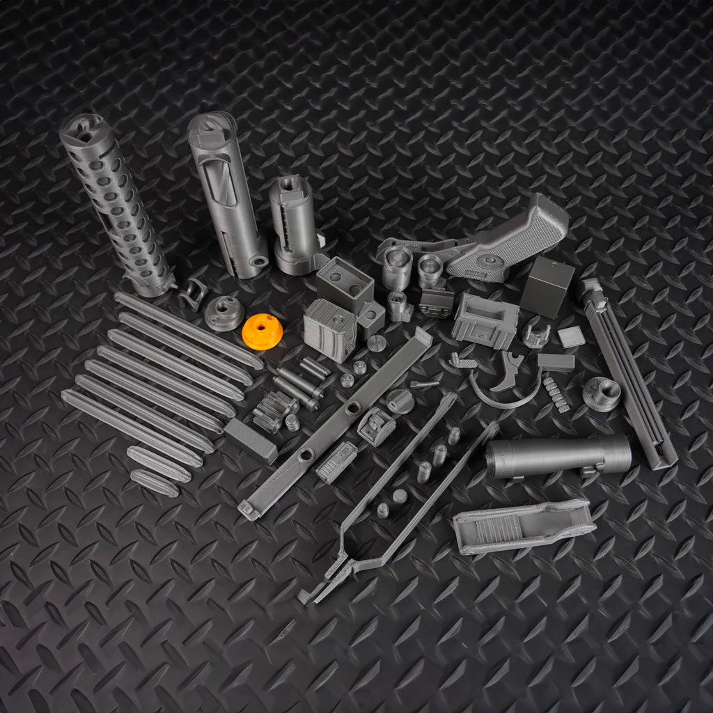 We have printed this Blaster in house with our own 3D printing machine. Each blaster comes raw meaning that it comes unfinished, so you can sand and paint it yourself. The blaster comes in parts and will need to be put together.