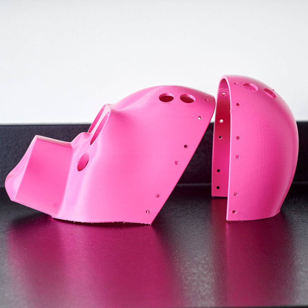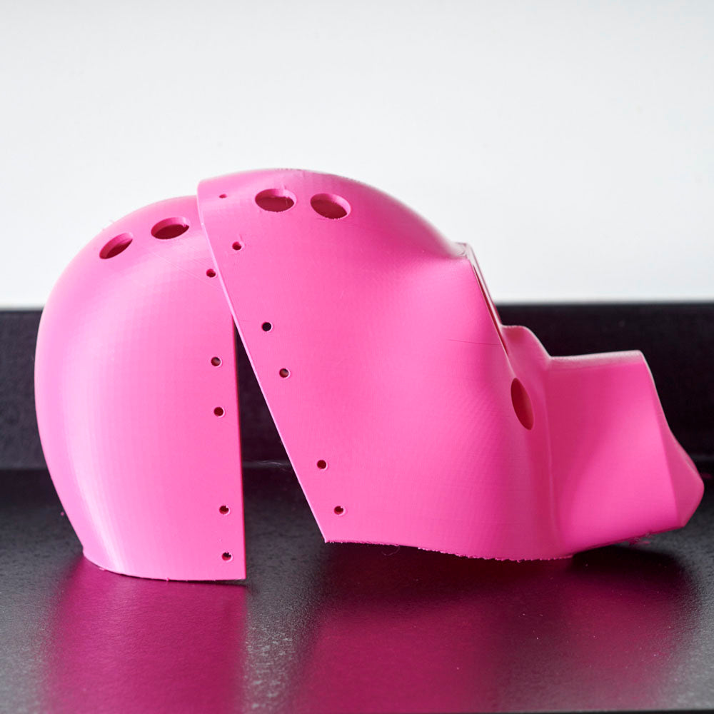 The helmet is also now split in half with join holes so you have the option to weld together as one piece or thread elasticated ribbon through the holes to stretch over your head allowing for a tighter more accurate fit.