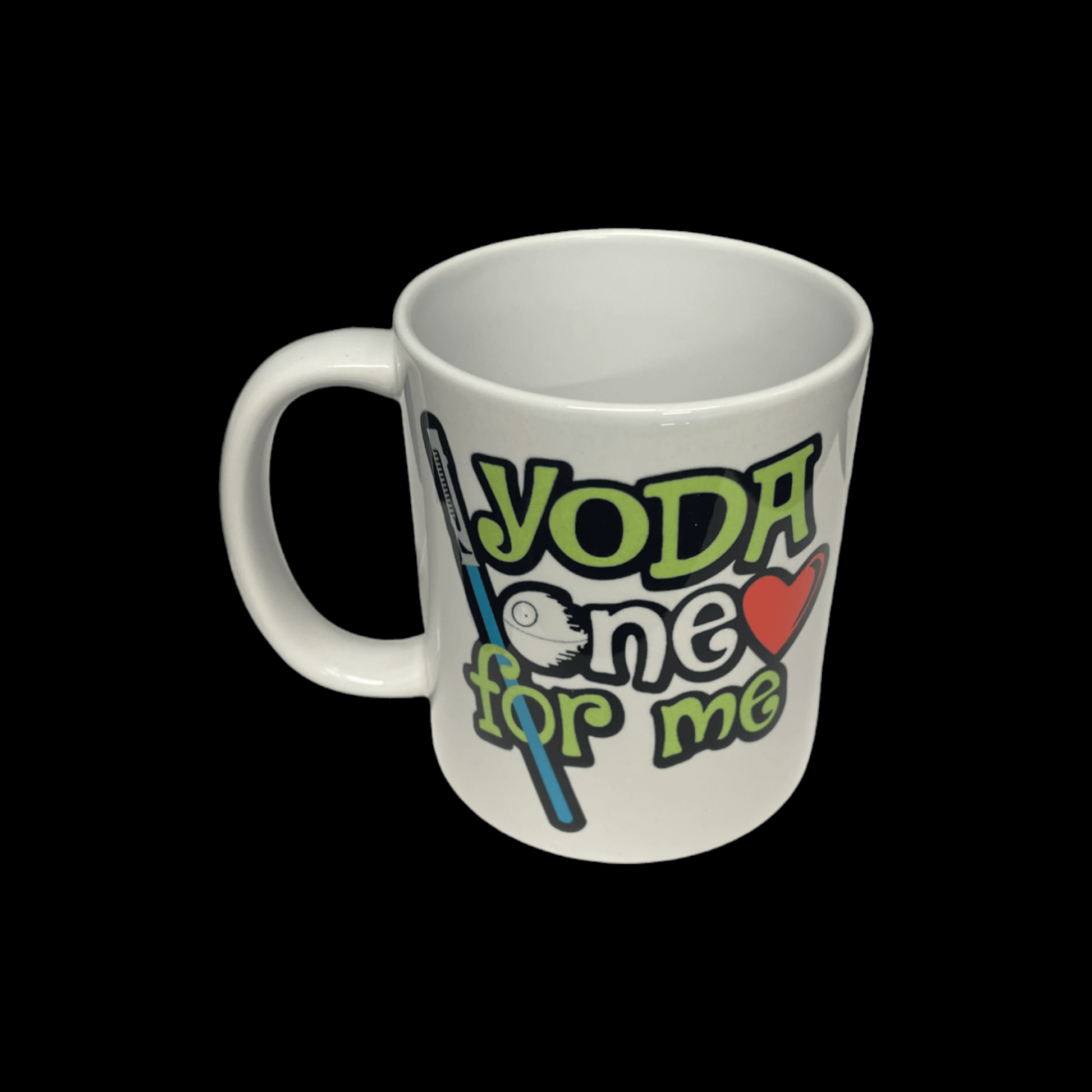 Yoda's Enduring Wisdom: Adorning the mug is an endearing portrayal of Yoda, representing his timeless wisdom and the phrase "Yoda One For Me," invoking a delightful play on words that combines Yoda's teachings with a heartfelt expression of love. This design serves as a loving reminder of shared affection and the enduring wisdom of the Jedi Master.